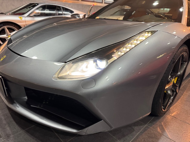 平成28年(2016年)フェラーリ 488GTB ディーラー車 事故歴無し グリジオチタニオメタリック LED付きカーボンファイバー製ドライバーゾーン