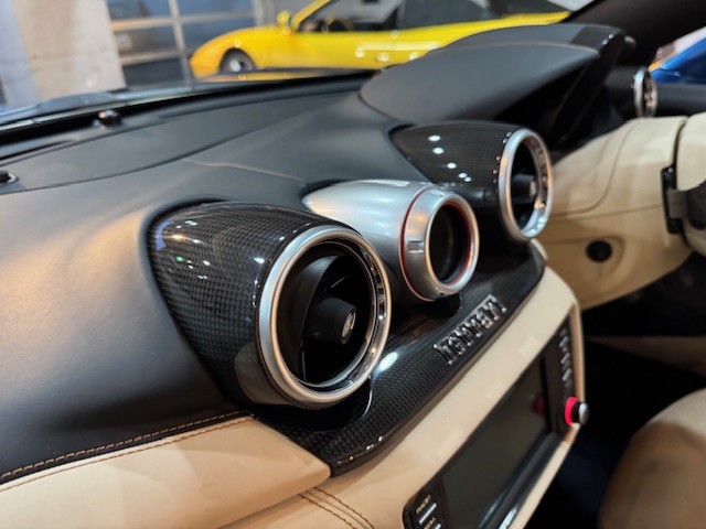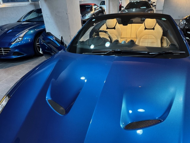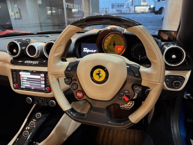 平成29年(2017年)フェラーリ カリフォルニア T ディーラー車 ブルーカリフォルニア LED付きカーボンファイバー製ドライバーゾーン プライス13750000円(税込み)