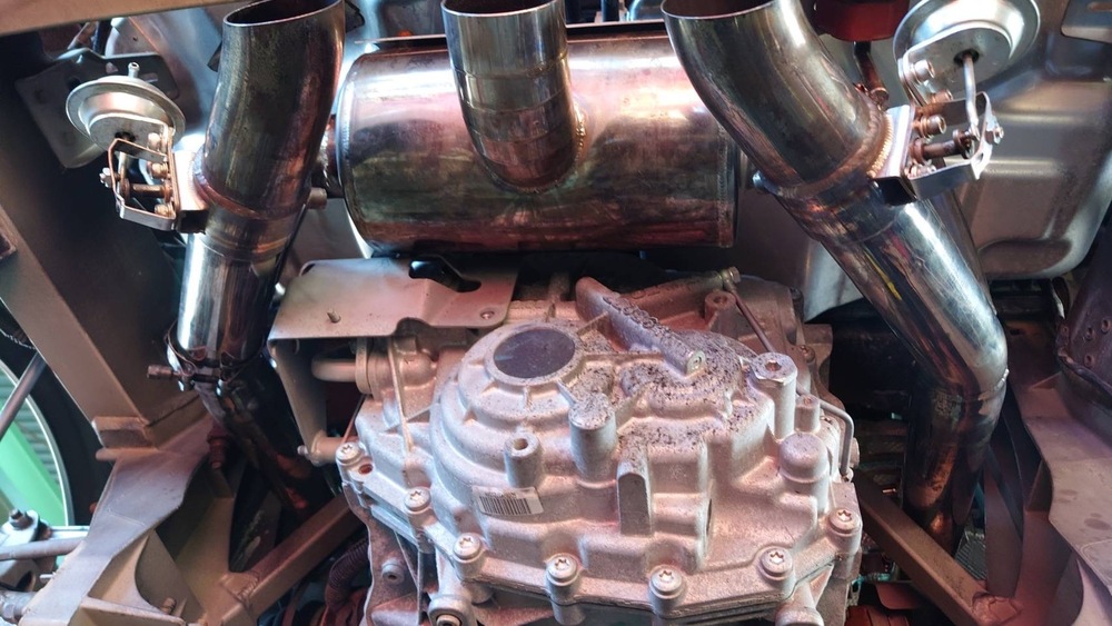 458イタリアのマフラー交換!こちらの社外マフラーはたいこがセンターにくるのでNG!